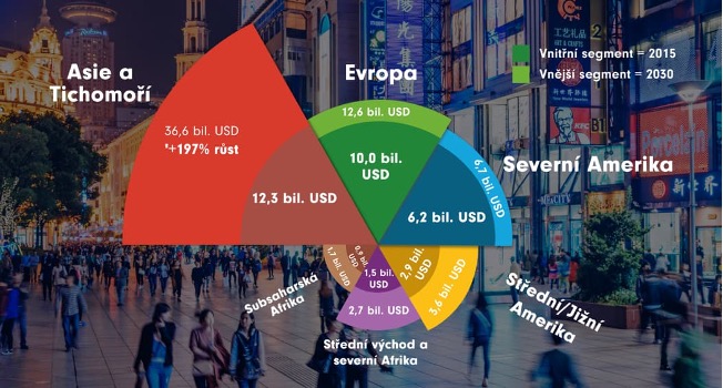 Odhadované spotřebitelské výdaje střední třídy v asijsko-pacifickém regionu