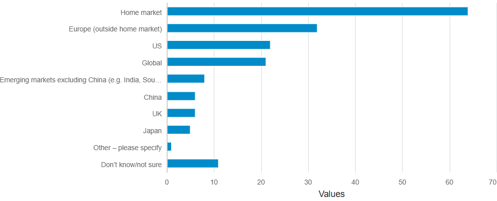 Mezi investory z Evropy, kteří se účastnili průzkumu, je jedním z nejpozoruhodnějších trendů přetrvávající tendence k domácímu investování (viz obrázek 7). To může odrážet pohodlí, které přináší známý terén, vnímání bezpečnosti a další faktory včetně potenciálních daňových výhod. V závislosti na svých investičních cílech by investoři měli také zvážit možnost přílišnou koncentraci na domácí trhy, což omezuje potenciál diverzifikace a přístup k výnosnějším příležitostem v jiných regionech nebo třídách aktiv.