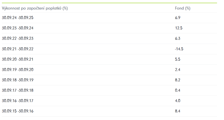 Minulá výkonnost není zárukou budoucích výnosů. Výkonnost fondu může v důsledku výkyvů měnových kurzů vzrůst nebo poklesnout.