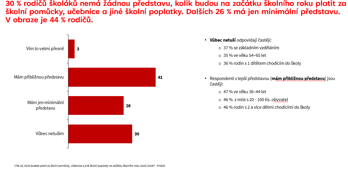 *Sběr dat byl realizován ve dnech 27. 6. – 1. 7. 2025 prostřednictvím aplikace Instant Research agentury Ipsos na reprezentativním vzorku 1019 respondentů ve věku 18-65 let, česká online populace. Na otázky odpovídali lidé, jejichž děti půjdou ve školním roce 2025/2026 do školy.