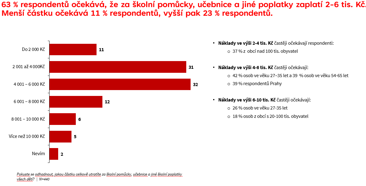 Finanční náklady spojené se začátkem školního roku se podle aktuálního průzkumu pohybují mezi 2 000 a 6 000 Kč pro většinu českých rodin. „Klíčem ke zvládnutí všech těchto výdajů je pečlivé plánování a zodpovědný přístup k financím. Nejenže tím předejdete stresu, ale navíc dáte svým dětem do života důležitou lekci o tom, jak správně hospodařit s penězi. Buďte příkladem a ukažte dětem, že chytrost a předvídavost má větší cenu než nejnovější model mobilu nebo drahá školní taška. Vám i dětem se to v budoucnosti mnohonásobně vrátí,“ uvádí Miroslav Zborovský, ombudsman klientů Home Creditu a dodává: „Zajímavé je, že lidé z větších měst předpokládají menší náklady než obyvatelé Prahy či středně velkých měst. Možná mají větší přehled nebo se prostě více zaměřují na chytré nákupy.“