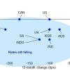 • Výnosové křivky se většinou zvednou (v Japonsku se však zploští)