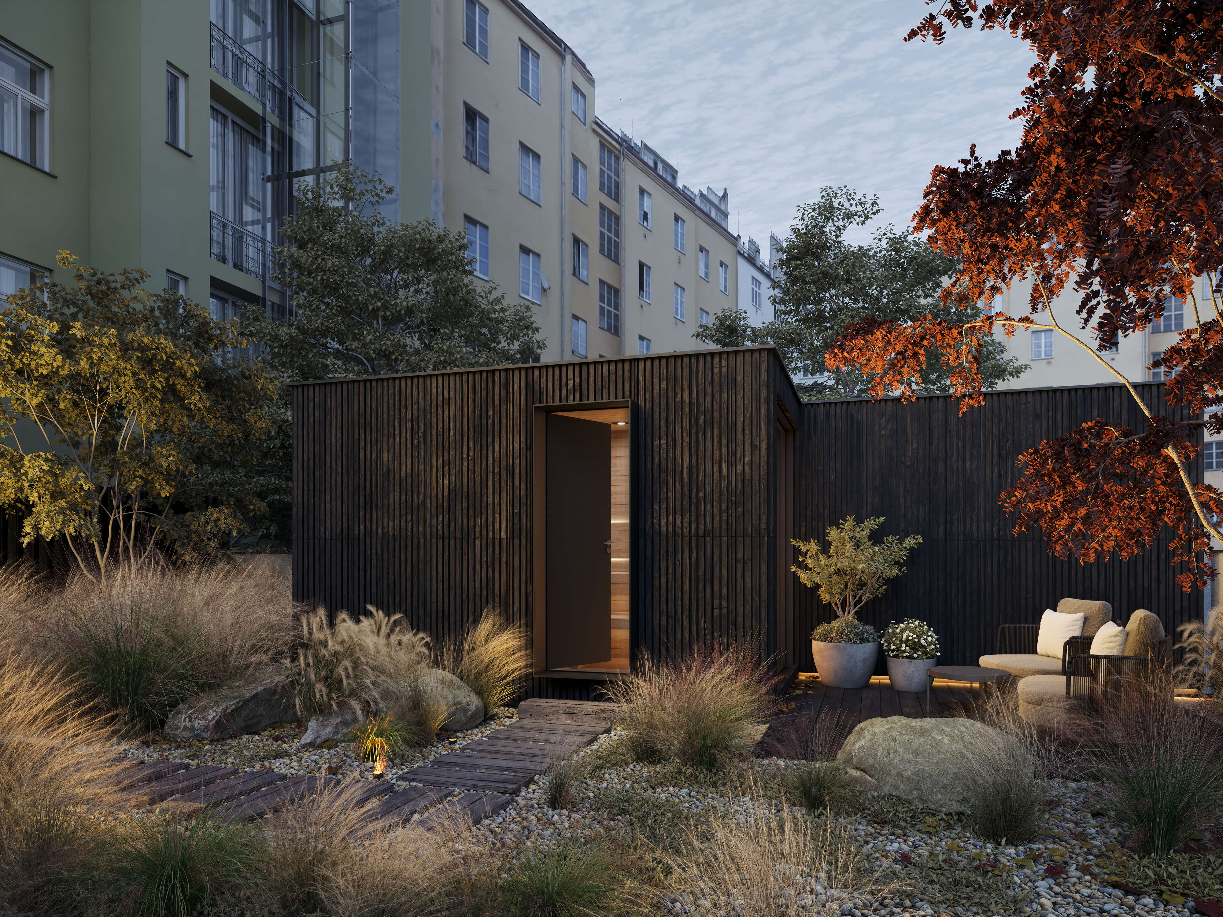 Součástí projektu bude také vnitroblok se saunou, zelení a posezením, který nabídne klidné prostředí uprostřed oblíbené městské čtvrti. Ulice Heřmanova na Letné se vyznačuje kombinací rezidenční atmosféry, dobré dostupnosti i široké nabídky služeb, kaváren a kulturních míst v blízkém okolí. Stromovka i Letenské sady jsou v pěší vzdálenosti.