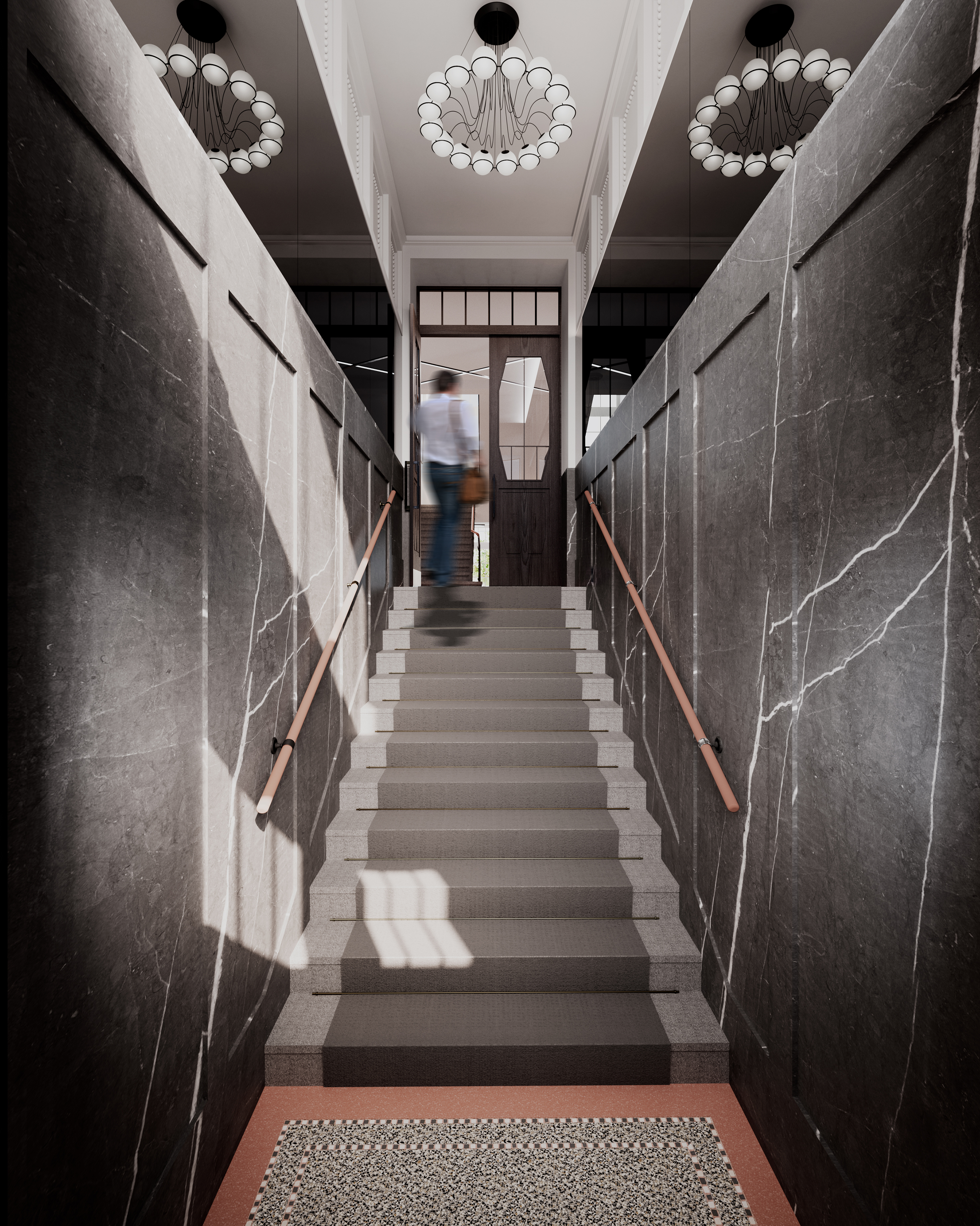 „Prací architekta je tvořit nejenom novou a kvalitní architekturu, ale také respektovat původní hodnoty a citlivě je přetvářet v čase pro současné potřeby obyvatel. V tomto duchu jsme přistupovali k návrhu rekonstrukce tohoto unikátního kubistického domu“, komentuje architektka Jana Klečková Holečková, jejíž studio JKH Atelier stojí za návrhy, a doplňuje: „Cílem bylo navrátit budově její původní eleganci a zároveň nabídnout klientům moderní bydlení vyššího standardu. Společné prostory, jakožto vizitka domu, působí velmi reprezentativně, čemuž dopomohlo zachování vysokých klenutých stropů, honosné kamenné obložení vstupu a zachování původní podlahy teraco s dekorativními motivy. Jednotlivým bytům byly kompletně změněny dispozice tak, aby odpovídaly současným požadavkům na moderní bydlení. Vnitroblok jsme proměnili na příjemné a klidné místo se zelení určené k setkávání a odpočinku.“