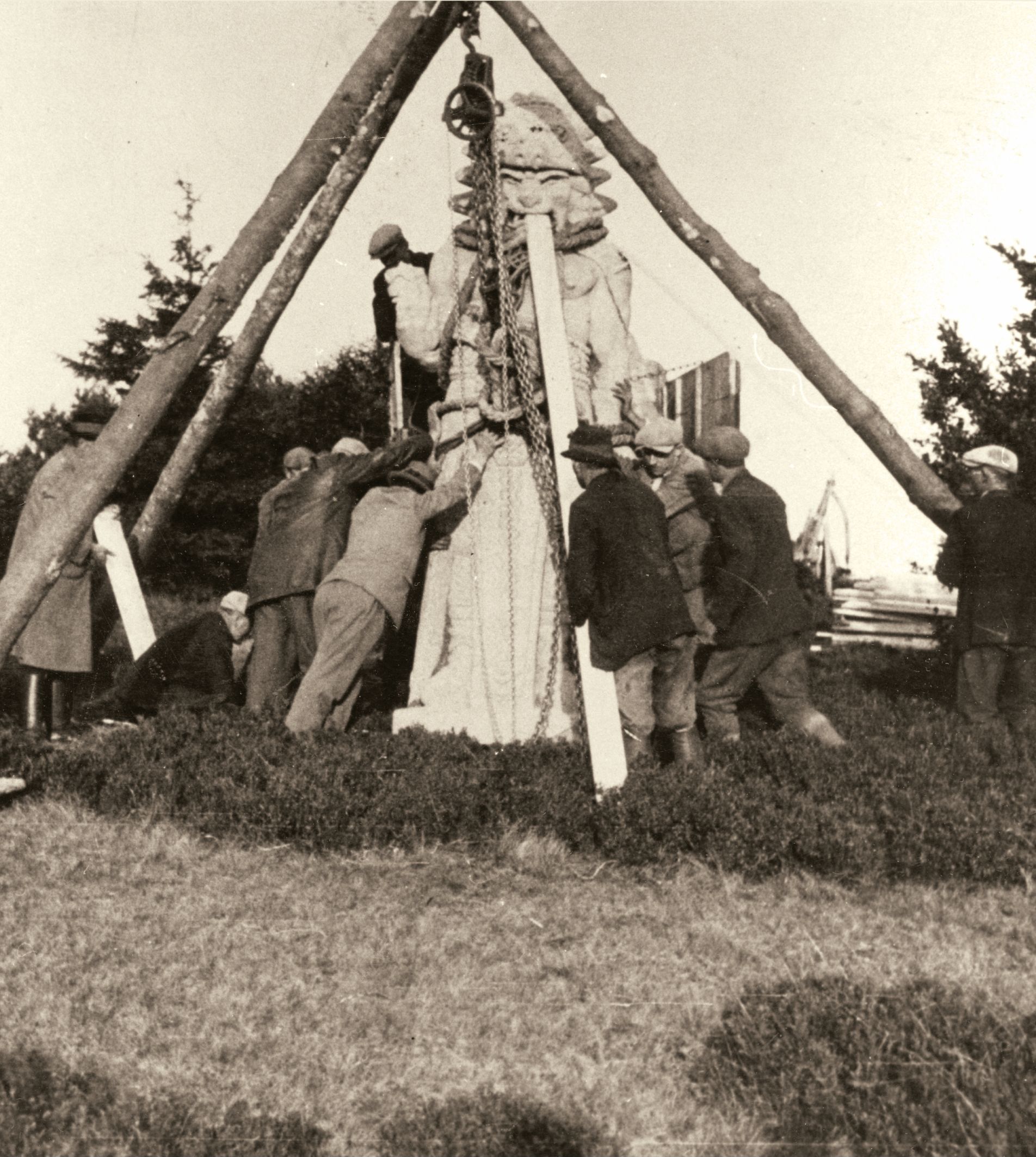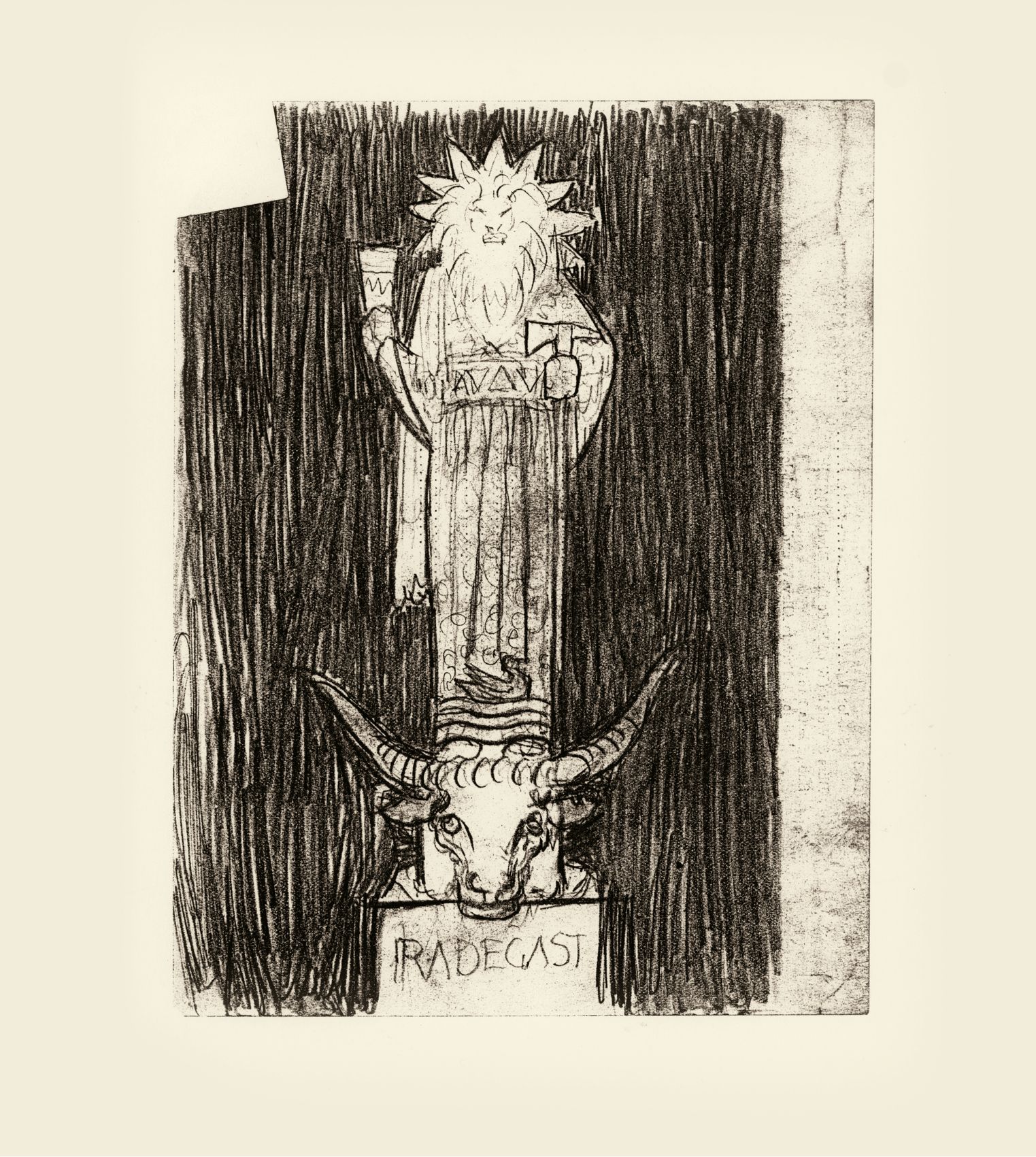 Žulová kopie stojí na hřebenové cestě mezi Pustevnami a poutní kaplí sv. Cyrila a Metoděje v Moravskoslezských Beskydech. Socha vznikla z 16,5tunového kvádru a její zhotovení v hodnotě jednoho milionu korun uhradil Pivovar Radegast. Uvnitř kopie sochy jsou navíc ukryty dokumenty a materiály pojednávající o autorech, původu původní sochy a Radegastově mýtu.