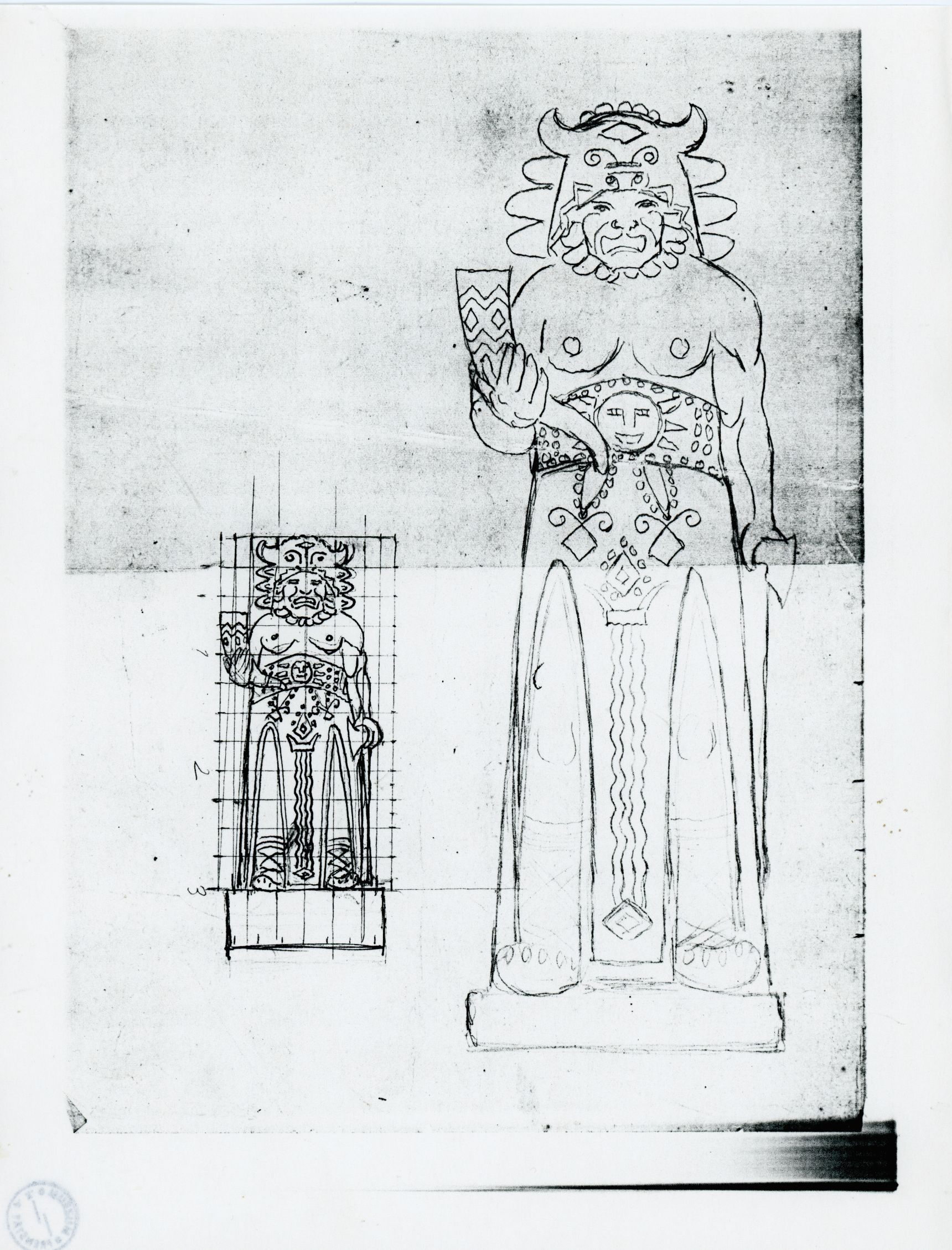 Frenštátský rodák Albín Polášek zhotovil první dřevěnou sochu Radegasta jako vousatého muže s rohem hojnosti. K motivu Radegasta se poté opakovaně vracel a jeho podobu dále rozvíjel až do současné podoby z roku 1930. Jeho velkou inspirací při tvorbě sochy byl zejména jeho rodný kraj. Nová verze Radegasta v nadživotní velikosti byla odlita z umělého kamene. Slavnostní odhalení proběhlo 5. července 1931 na Radhošti.