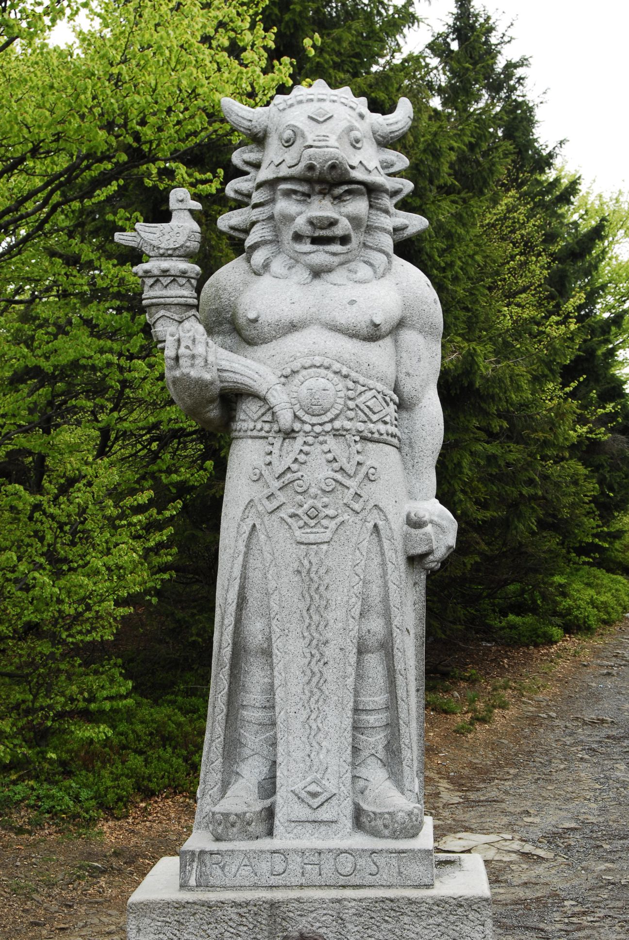 Původní socha boha Radegasta však časem podlehla drsným horským podmínkám a musela být v roce 1998 nahrazena. Věrná kopie sochy boha Radegasta, vysoká zhruba 3,2 metru a vážící přibližně 3,2 tuny, byla umístěna v nadmořské výšce 1 105 metrů, pouhých 83 metrů od vrcholu Radegast.