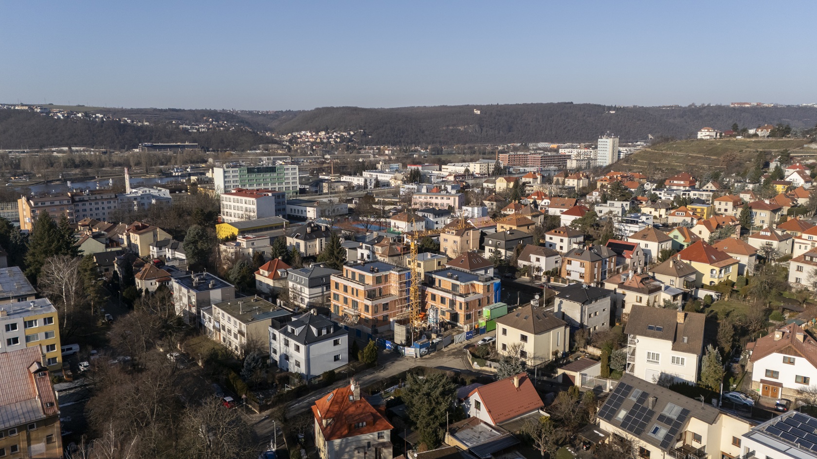 V současné fázi výstavby jsou na obou vilových domech osazena okna a dokončeny vnitřní dělící konstrukce i omítky. Realizace se nyní posouvá do etapy instalace technického zařízení budov.