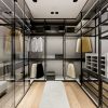 Šatní prostory jsou řešeny systémem Senzafine v podobě walk-in šatny i varianty wardrobe Ego, které nabízejí maximální variabilitu a precizní organizaci typickou pro italskou značku Poliform.