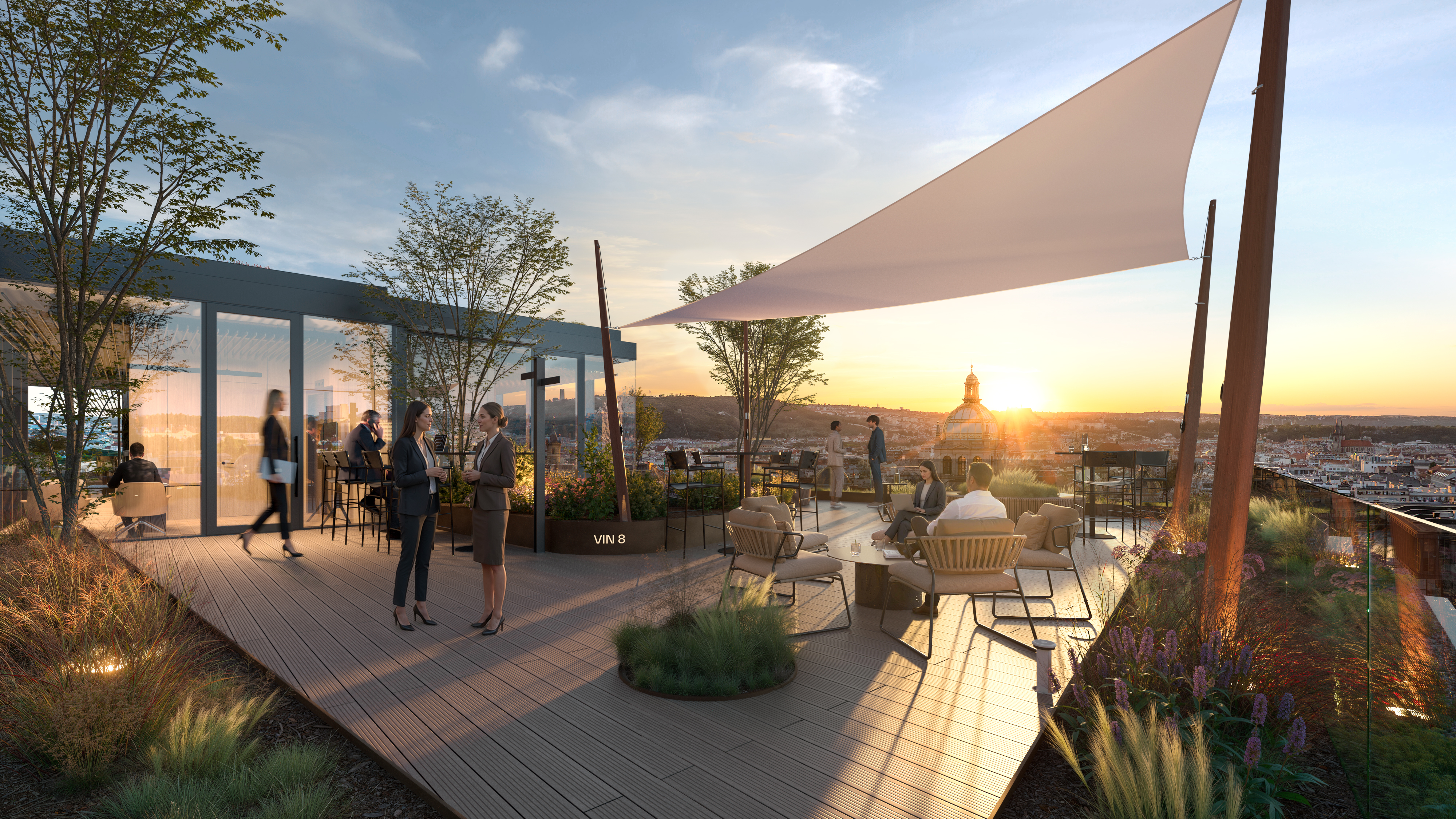 Směrem do Vinohradské třídy vznikne přibližně 7 500 m² prémiových kancelářských ploch v nejvyšším standardu LEED Gold v jedné z nejžádanějších lokalit na strategické křižovatce Prahy 1 a Prahy 2. Součástí bude také rooftop terasa s výjimečnými výhledy na centrum Prahy včetně Václavského náměstí. V parteru nových budov se počítá se zázemím pro retailové nájemníky celkem na ploše 1400 m2.