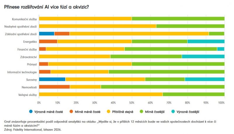 O nadbytku peněz v oběhu svědčí také očekávání ohledně fúzí a akvizic. Přibližně polovina analytiků v průmyslovém sektoru očekává, že transakce v oblasti fúzí a akvizic budou letos častější, zatímco před rokem to byla pouze třetina. A i když objem transakcí v oblasti IT může být do jisté míry brzděn společnostmi, které vkládají kapitál do rozvoje umělé inteligence, 63 procent analytiků v sektoru IT nyní očekává v nadcházejících měsících nárůst fúzí a akvizic.