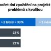 Studie dokládá, že nedostatky v kontrole kvality spouštějí řetězec komplikací: pro 67 % firem znamená nedostatečná kontrola kvality návazné prodlevy. Téměř šest z deseti společností, které dokázaly vyčíslit dopady na harmonogram, uvedlo, že problémy s kvalitou zdrží projekt v průměru o více než dva týdny, a téměř čtvrtina hlásí zpoždění přesahující jeden měsíc. Rizika se neomezují jen na čas: firmy bez standardů mají o více než 50 % vyšší pravděpodobnost, že budou čelit reklamaci (54 % versus 35 %), a o 23 % vyšší riziko sporů se subdodavateli (43 % vs. 35 %).