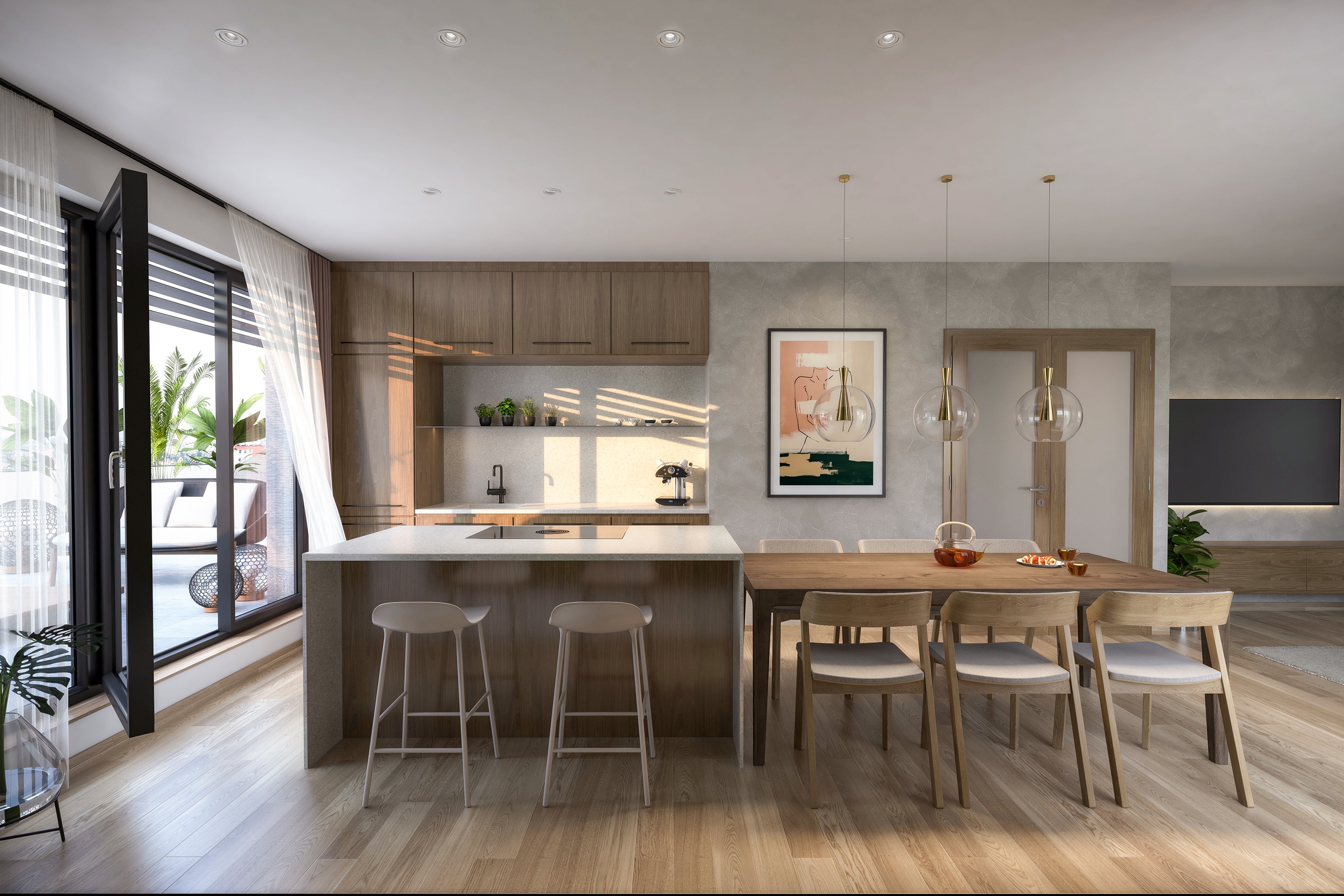 Maximum denního světla v interiéru zajišťují velkoformátová okna. Díky promyšleným dispozicím tak vzniknou vzdušné a přirozeně působící prostory. Součástí technického řešení je příprava na předokenní žaluzie. Interiérové řešení je postaveno na kvalitních materiálech a nadčasovém designu, který se promítá nejen do samotných bytů, ale také do kultivovaného zpracování společných prostor. Projekt zahrnuje 87 parkovacích míst, zájemci o větší byty mohou využít nabídky dvou stání.