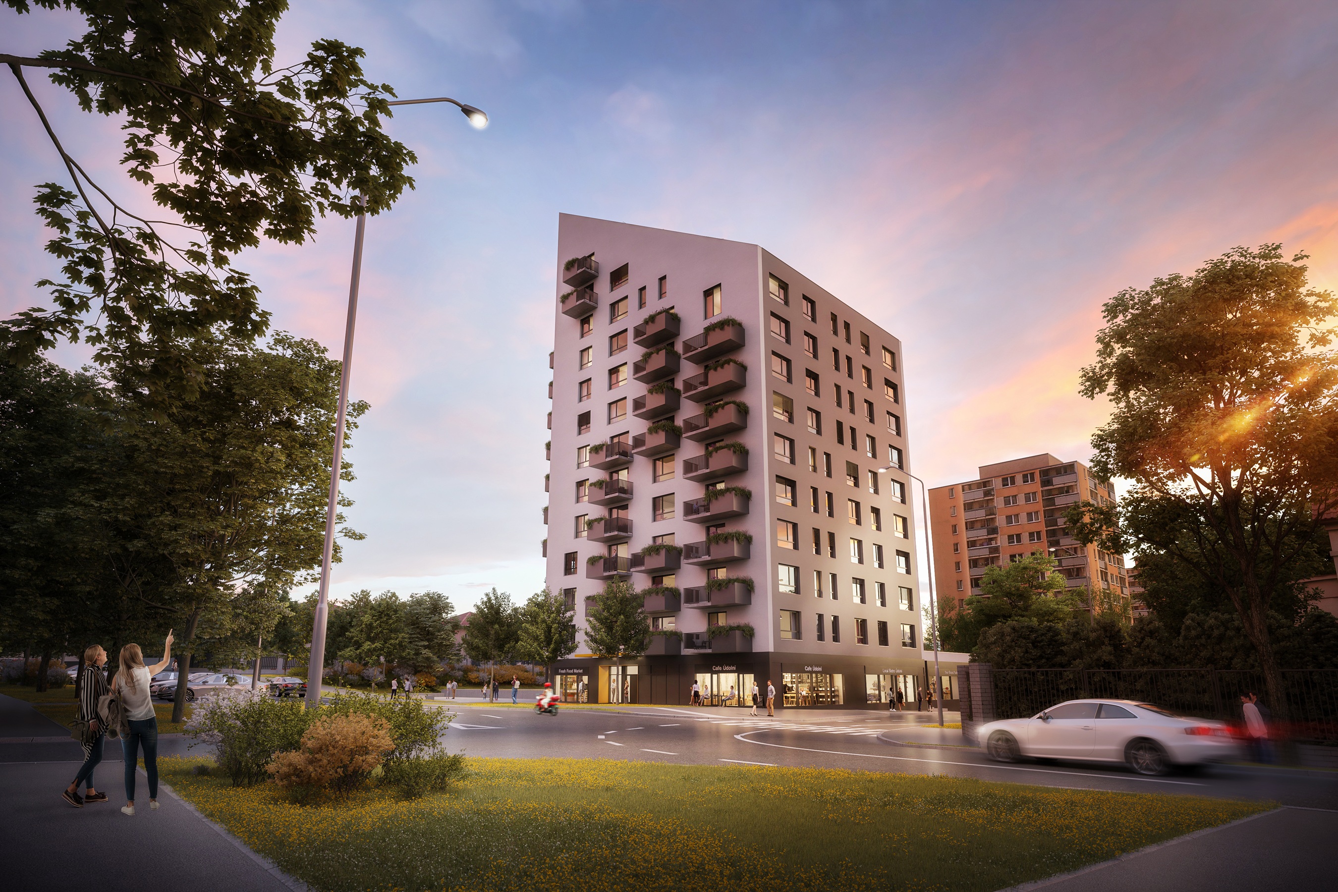 Vedle kvalitní architektury počítá developer také s organickým zapojením stavby do jejího okolí. Součástí návrhu je parter se službami i vylepšení bezprostředního prostoru kolem budovy tak, aby Panorama Braník přirozeně navázal na charakter zdejší čtvrti a stal se součástí jejího každodenního života.