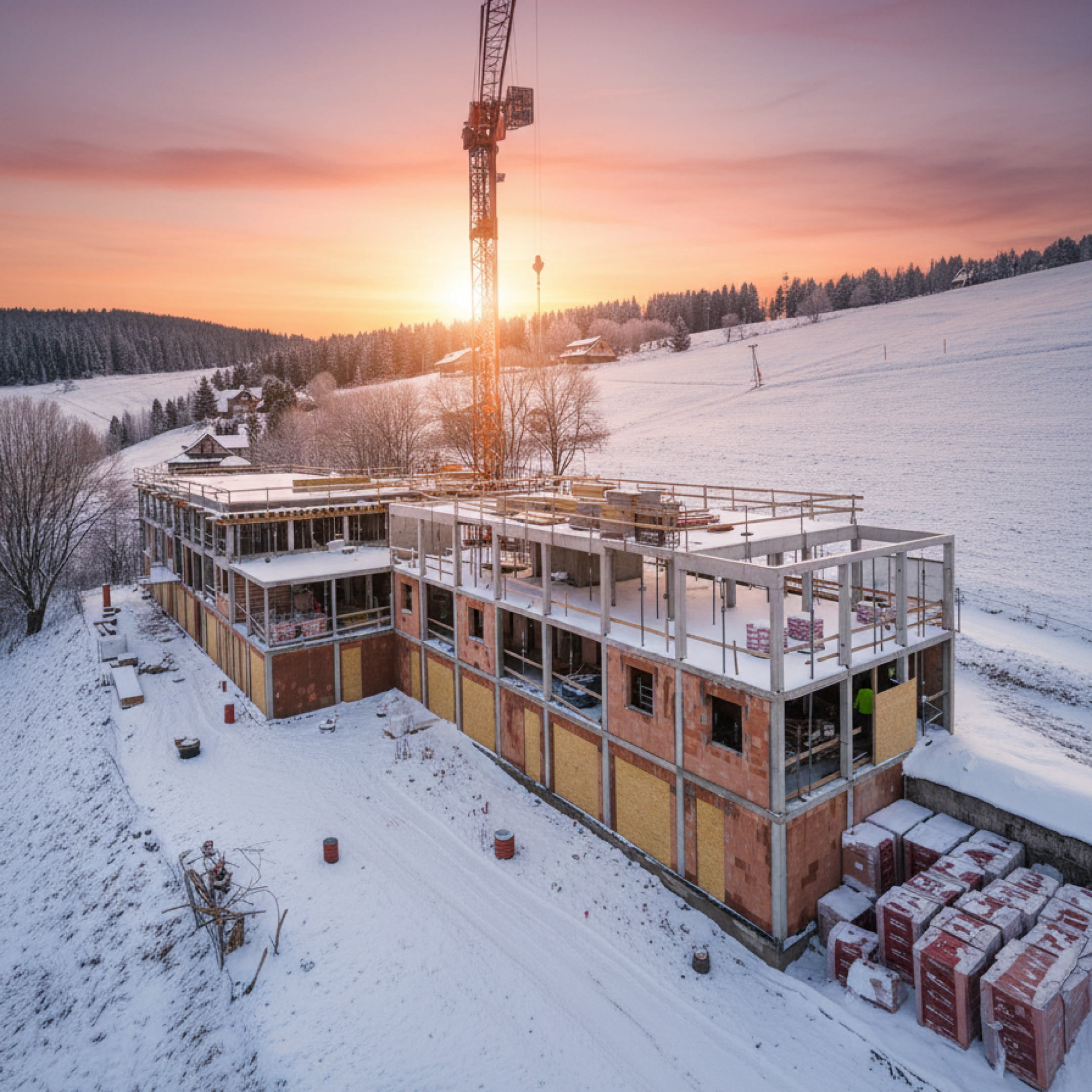 V Peci pod Sněžkou Crescon pokračuje s výstavbou projektu Zahrádky 1000 přímo u sjezdovky, kde stavba dosáhla druhého nadzemního podlaží včetně stropu. Přes zimní sezonu bude objekt zazimován a na jaře 2026 se práce obnoví. Z celkových 33 plně zařízených apartmánů v dispozicích od 1+kk po 4+kk zůstává k dispozici poslední třetina volných jednotek.