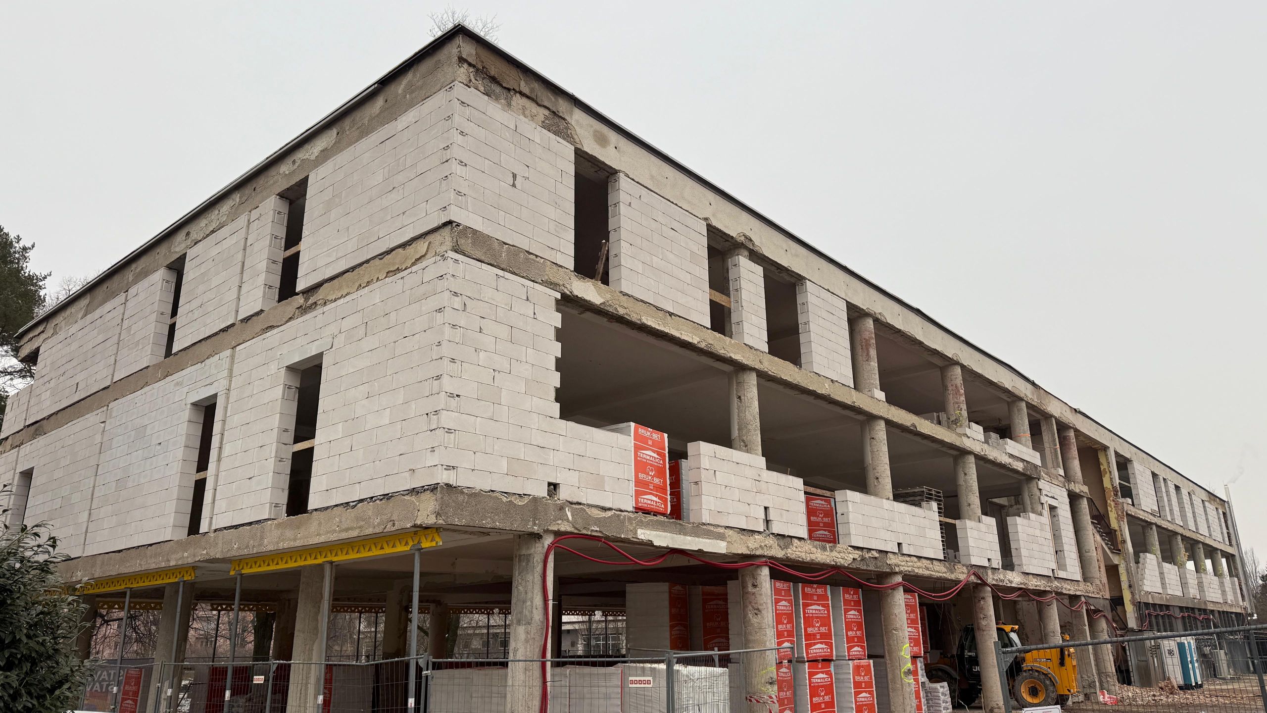 HSF System nyní realizuje stavební práce na druhém a třetím nadzemním podlaží. Probíhají úpravy konstrukcí, budování nových obvodových stěn a modernizace technického zázemí. Cílem je připravit budovu na další etapy výstavby a její nové využití.