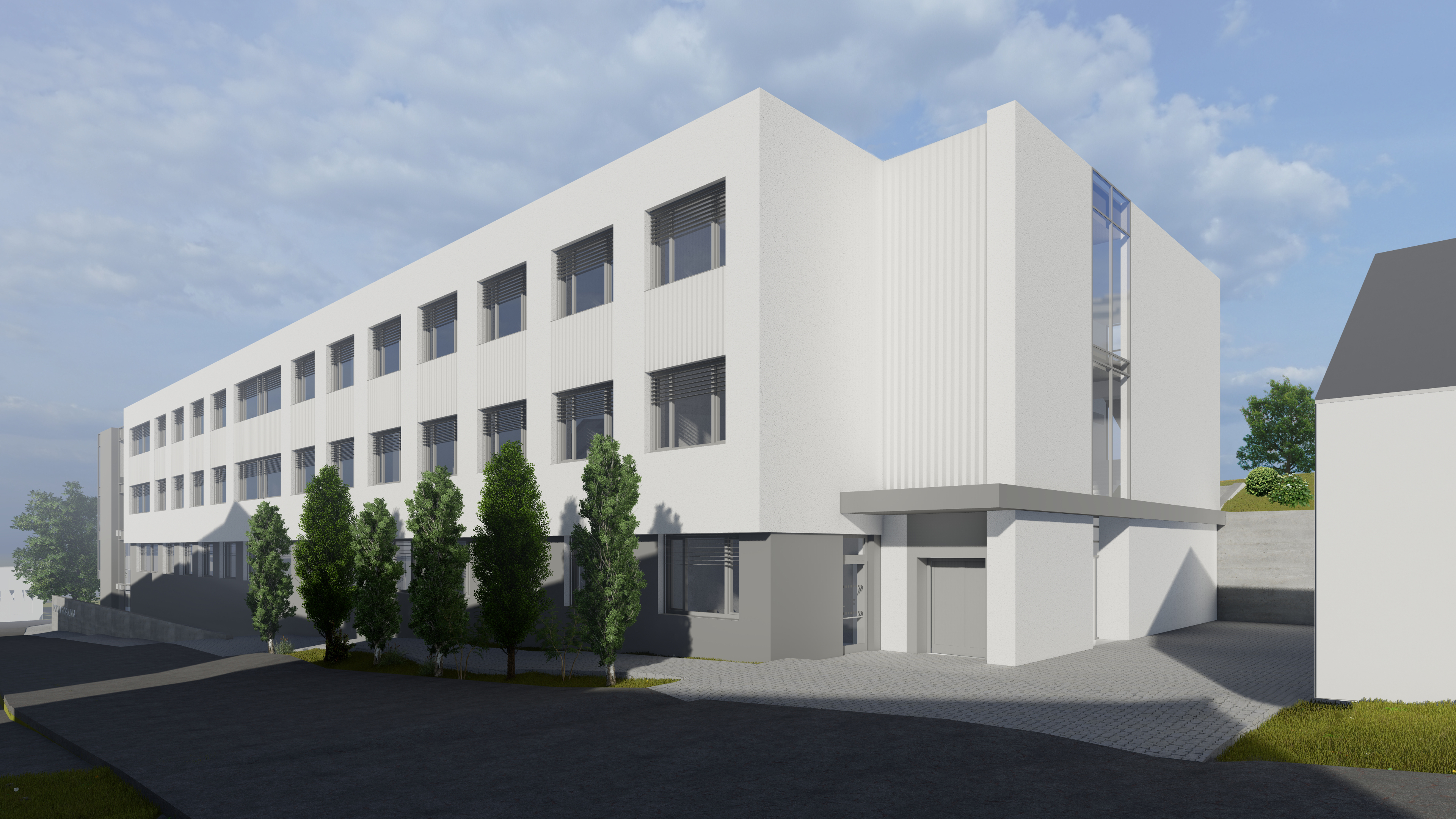 Vizualizace: Stavební společnost GEMO a.s. zahájila práce na dostavbě budovy psychiatrie v areálu Fakultní nemocnice Olomouc – nový pavilon U2, pohled z ulice Za Nemocnicí, zdroj: FNOL