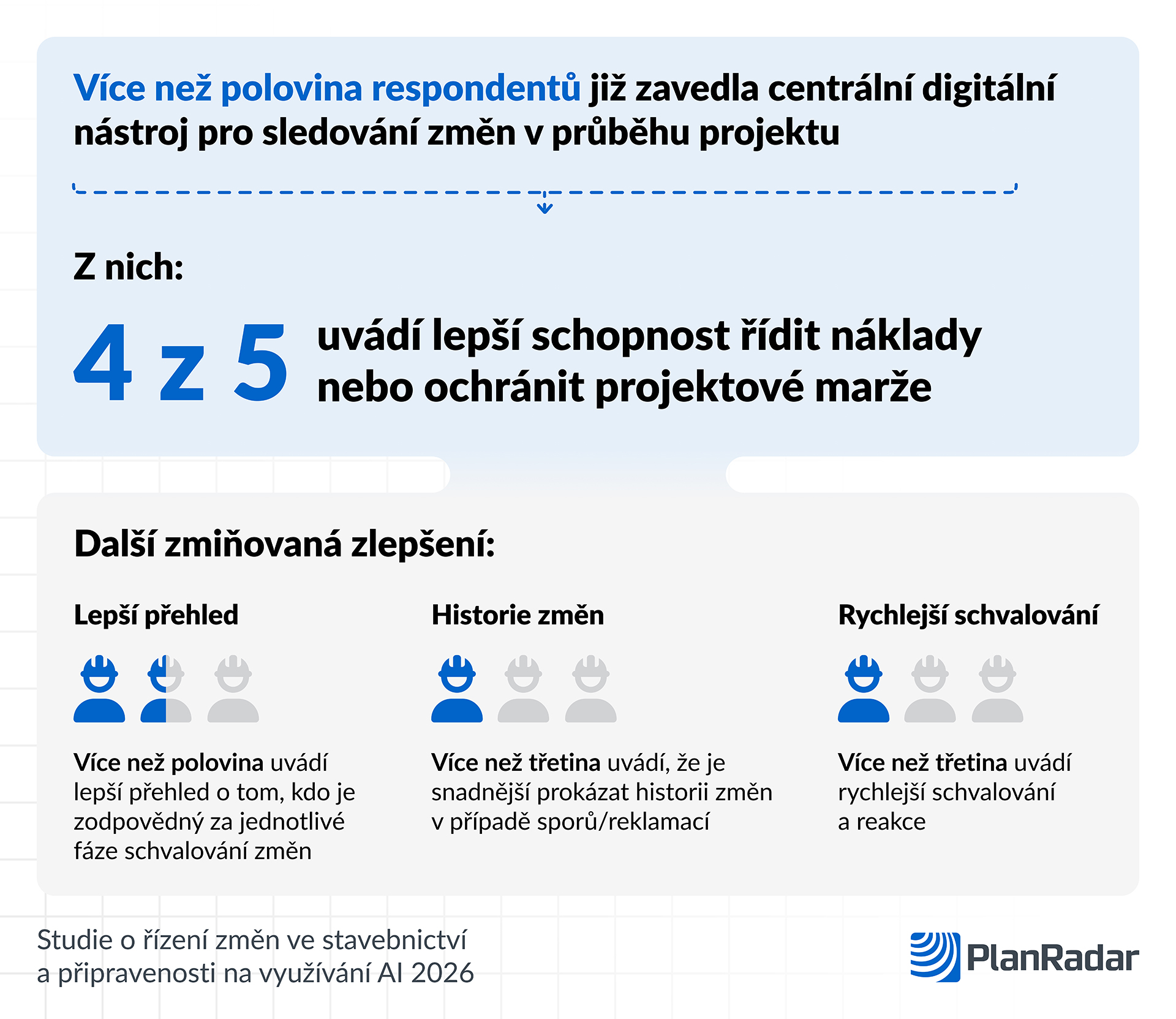 “Construction Survey Report 2026: Managing Project Changes in the Age of AI” vychází z online dotazníkového šetření o 37 otázkách, které proběhlo v lednu 2026 mezi 1 728 respondenty. Všichni nesou přímou odpovědnost za realizaci projektů – včas a v rámci stanovených rozpočtů. Mezi účastníky byli zástupci projektového řízení a poradenství, generálních dodavatelů, specializovaných dodavatelů, architektů i developerů ze 14 zemí Evropy, Blízkého východu a asijsko-pacifického regionu. Kompletní report je k dispozici ke stažení zde: https://www.planradar.com/ebooks/managing-project-changes-in-the-age-of-ai/